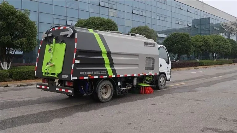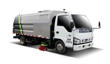 ZBH5070TXSQLE6 7 tons washing and sweeping truck is a high-efficiency sanitation vehicle developed by ZOOMLION that integrates the functions of a road sweeper and a high-pressure cleaning vehicle. The car adopts Qingling Class II chassis, and is modified by adding auxiliary engine and its transmission device, trash can, cleaning device, dust reduction system, suction nozzle, high pressure cleaning system, hydraulic system, electrical system and other components.