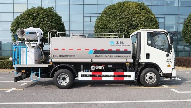 ZBF5070GPSBJE6 Water Tanker Truck With Spray Nozzles is a new type of green spraying vehicle developed by the company. The car is refitted with bj1076vejda-51 type II chassis of BAIC Futian Automobile Company and special operation device and control system.The special operation device includes fog gun system and low-pressure waterway system, in which the fog gun system includes fuel oil generator set, water pump, fog gun, etc. The low-pressure cleaning system is equipped with front duckbill flushing device, middle hedge flushing device, rear sprinkler, greening irrigation device and water cannon.