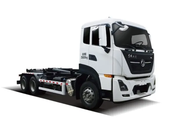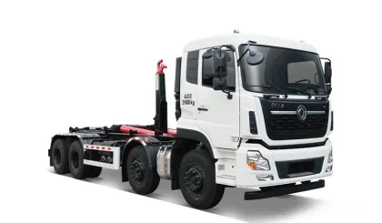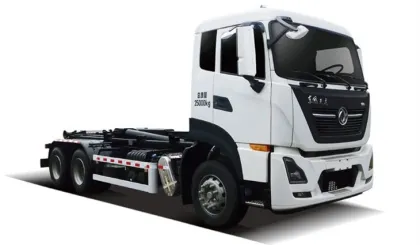 The container-detachable garbage truck (Transfer type) is one waste transfer vehicle matched for waste transfer stations and is mainly used to transfer the compressed household waste compacted by the waste transfer stations in sealed manner to the garbage disposal sites. The loading and unloading of the container and the dumping of waste can be completed by the driver alone on or off the vehicle. It's a new and environ- mental-friendly waste transfer vehicle with simple and reliable operations.