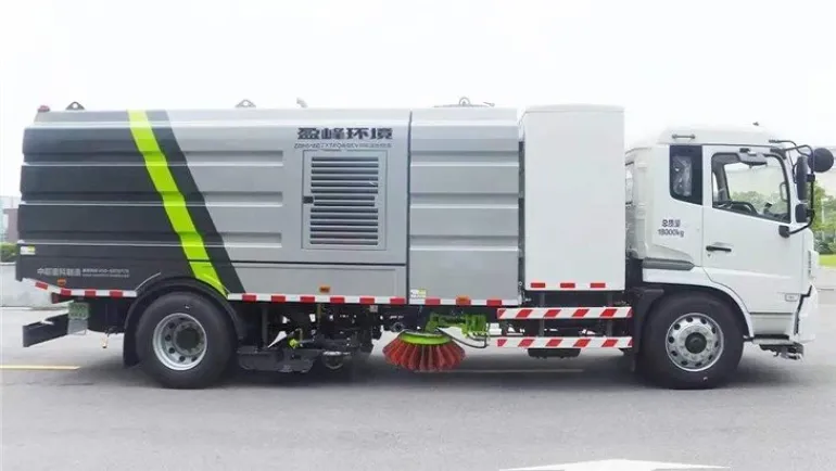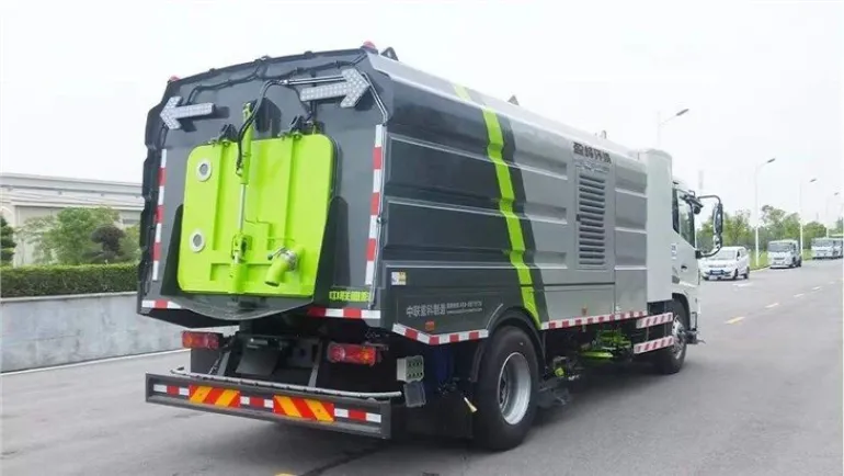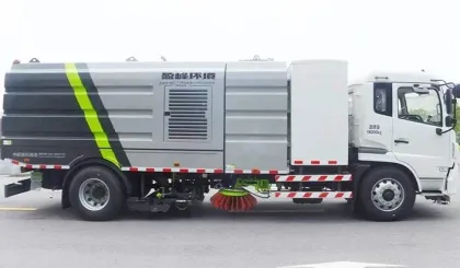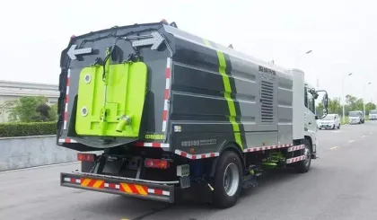 ZBH5180TXSEQABEV PURE ELECTRIC washing and sweeping vehicle is a new generation of environmental sanitation mechanical product developed by our company. It is refitted with the pure electric chassis of EQ1180GEVJ1 class II truck of Dongfeng Motor Company, with zero emission. Its working principle is that the chassis and top are powered by batteries, the road surface is cleaned with high-pressure and low-flow high-pressure water flow, and the sewage and garbage on the road surface are sucked back to the on-board dustbin through the fan.