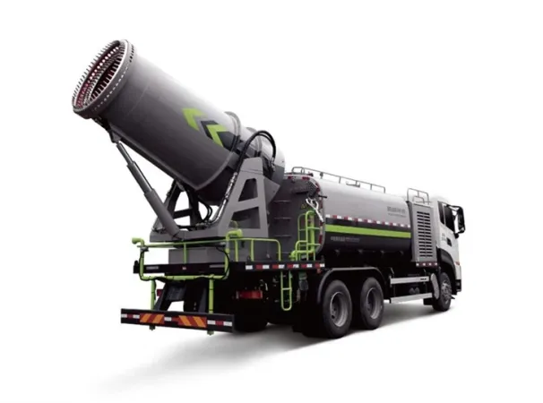 The multifunctional dust-suppression vehicle researched and developed by Infore Zoomlion can realize multiple functions, including dust-suppression mist spray and road cleaning. The mist spray system features powerful airflow, good atomizing performance, long range, and extensive coverage and is applicable for the dust-suppression spraying in the outdoor powder material (Including coal,sand, and stone) storage yards and the dust-suppression spraying in the construction sites, building reconstruction sites, and leveling sites. Its low pressure water circuit system is provided with front duckbilled flushing, middle-mounted conical nozzle flushing, rear sprinkling, and rear water monitor functions. It’s applicable for the environmental dust-sup- pression of urban roads, cleaning of advertising boards, and irritation of road green belts and its self-priming device can be used for independent water refilling of the product.